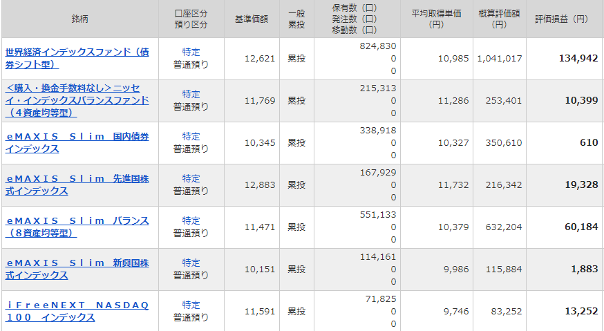 ↓一般口座。世界経済ファンドは未だ13万円の含み益。