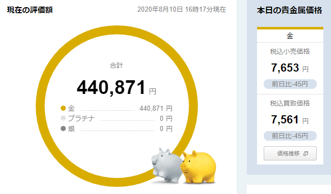 ↓現在積み立て中の金額は44万円。もう少しで金貨1オンス1枚、1/2オンス1枚、計2枚と交換できます。